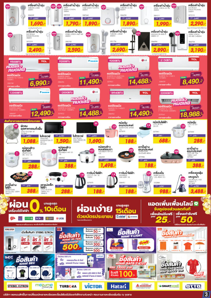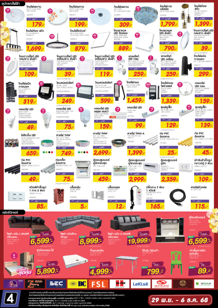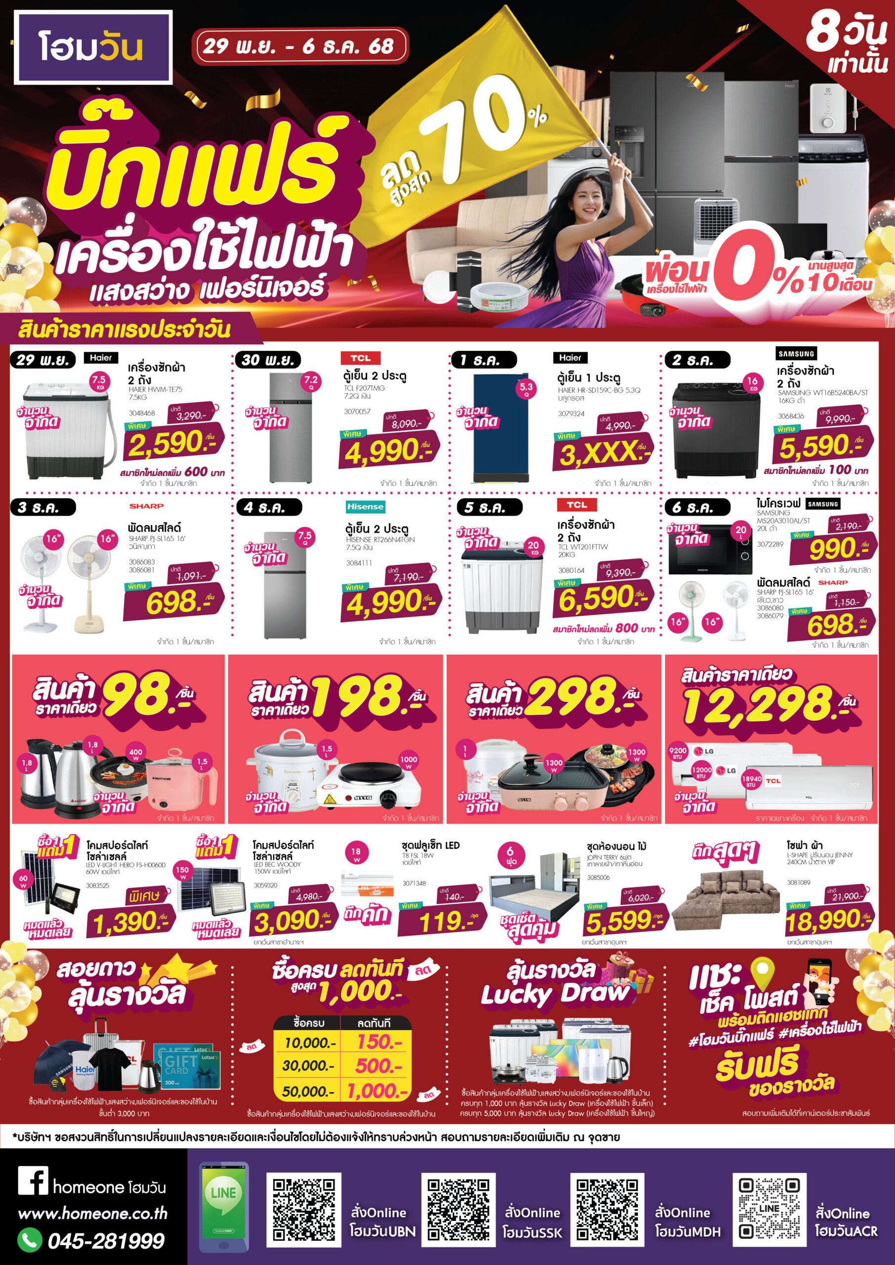 โฮมวันบิ๊กแฟร์ เครื่องใช้ไฟฟ้า แสงสว่าง เฟอร์นิเจอร์ 29 พ.ย. – 6 ธ.ค.68