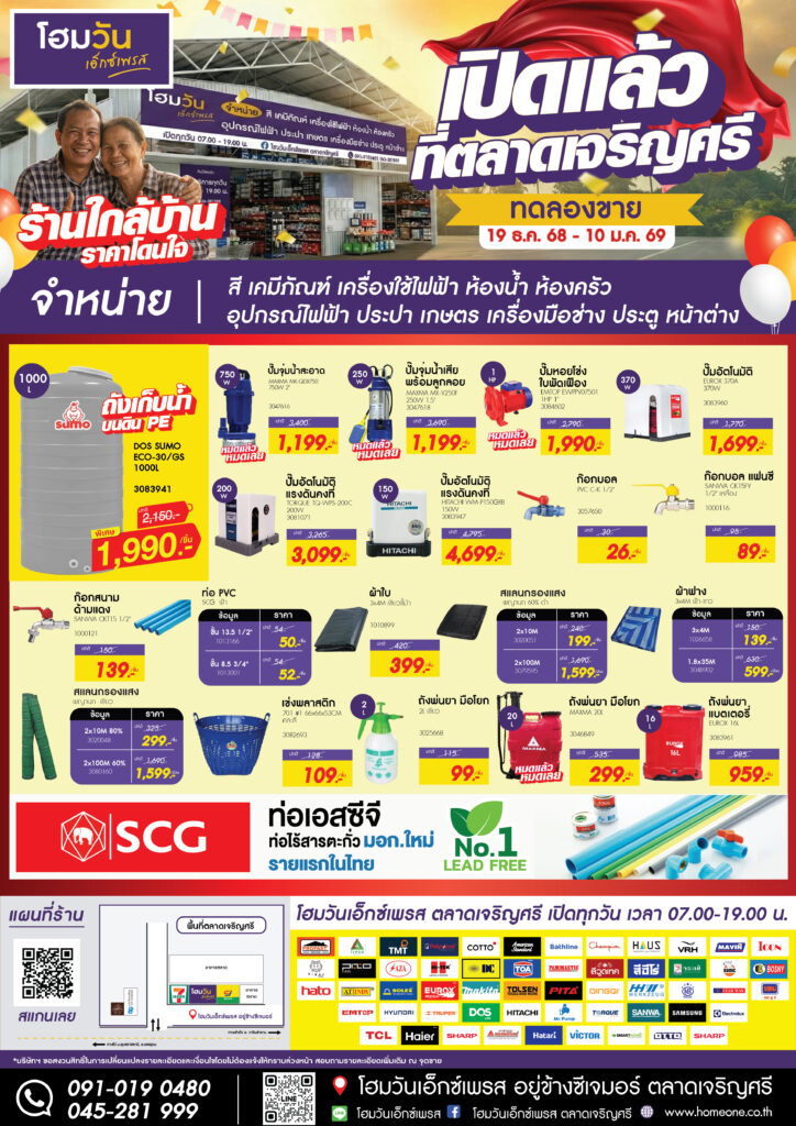 โฮมวันเอ็กซ์เพรส ตลาดเจริญศรี เปิดทดลองขาย 19 ธ.ค.68 – 10 ม.ค.69