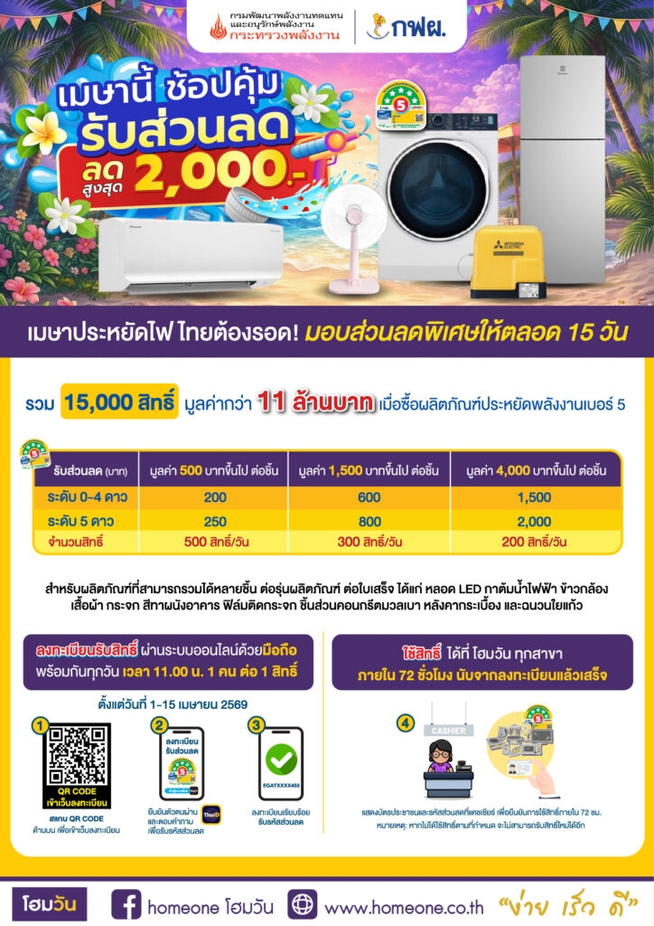 เมษานี้ช้อปคุ้ม  กฟผ. มอบส่วนลดพิเศษ สูงสุด 2,000.-